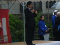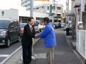 今日も朝あいさつからスタートです。余戸駅南でしました。余戸駅前の媛銀前で野志市長の駅前演説がはじまり・・・
