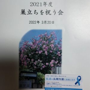 午後からは長期欠席者の砦の1つであるNPO法人 翼学園の2021年度巣立ちを祝う会に出席しました。