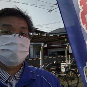 金曜日の「朝のあいさつ活動」は伊予鉄鎌田駅です