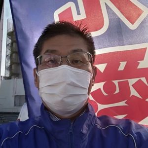 本日の「朝のあいさつ活動」は伊予鉄余戸駅南交差点です。